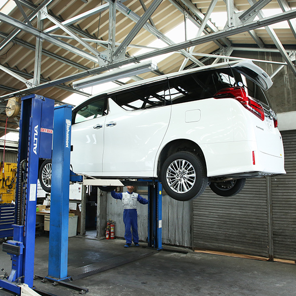 自社工場内で完成検査を行えるラインを備えています。短時間・低価格で車検を済ませることができます。