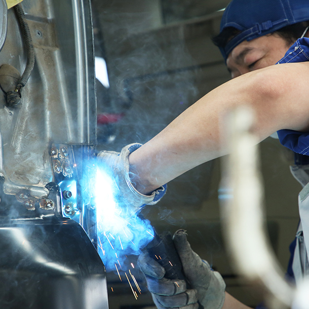 作業を行うのは、当社の誇る熟練のスタッフたちです。大切なお車を、責任をもって仕上げてまいります。